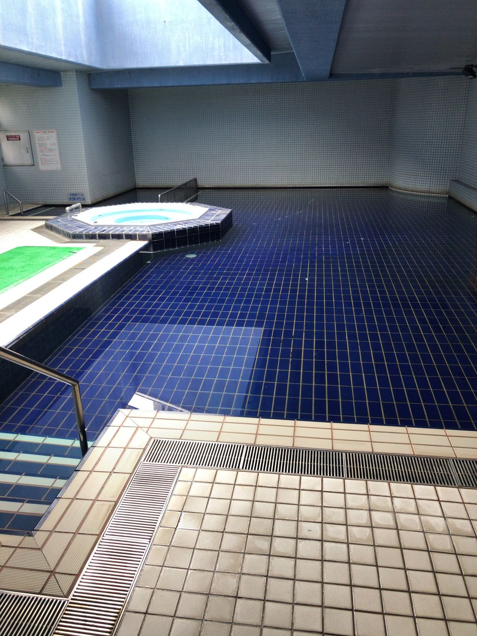 水風呂。深夜時間帯にサウナが稼働していないため、水が抜かれていた。